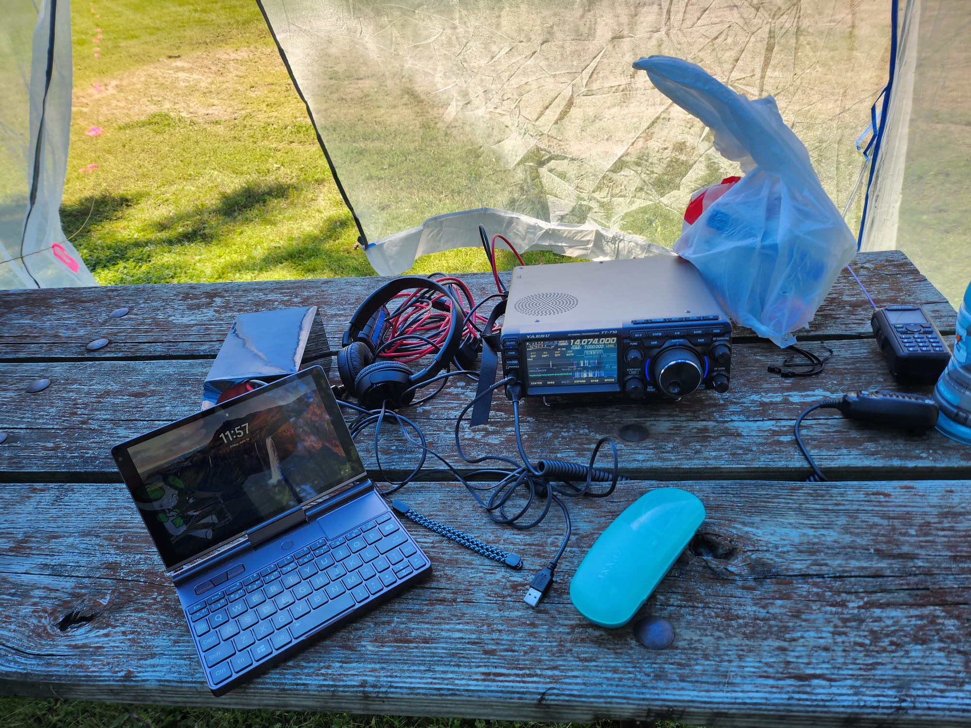 The end of June brought the annual Field Day, which I participated in along with the Richfield Radio Club. This was my second field day—one of my earliest radio experiences was Winter Field Day back in January—only this time, I got to actually operate. I wound up doing a tandem operation with the club president, Matt KB0TNG. He'd been wanting to play with an FT-710, which is my main radio. We also put up my Wolf River Coil so we could have some flexibility with bands. I wound up lending someone else my 20m bandpass filter, and we wound up working 40m.